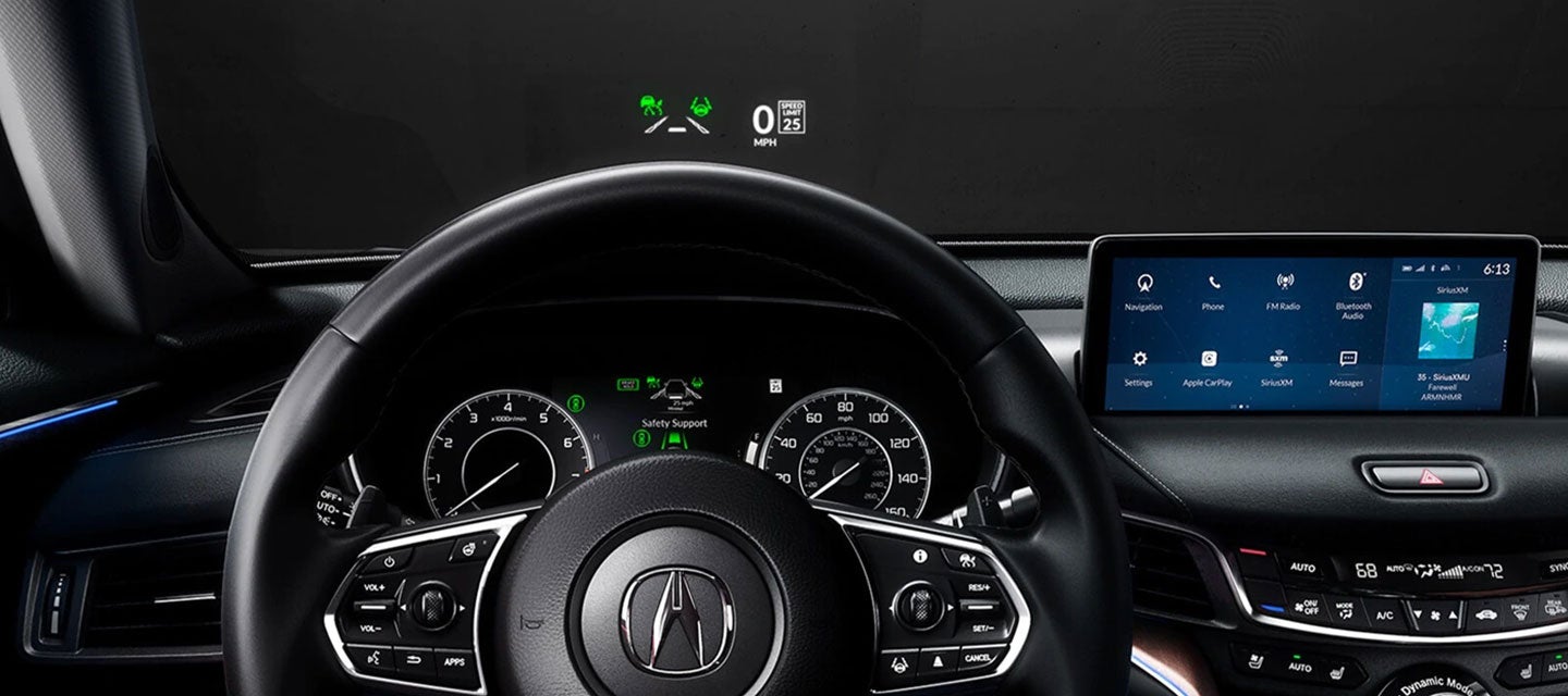 Every 2023 Acura TLX comes with a comprehensive list of advanced driver aids. It includes a forward collision warning system with automatic braking, lane-departure warning with a mitigation system that will help keep you in your lane, adaptive cruise control, and a multi-view backup camera. The Technology adds a blind-spot warning system with rear cross-traffic alert and parking sensors, and the Advance adds a 360-degree surround-view camera and a 10.5-inch head-up display.
