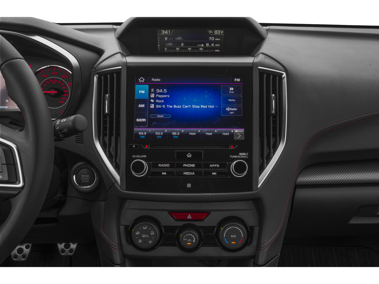 - Radio: Subaru STARLINK 8.0" Multimedia Plus System -inc: AM/FM stereo, HD radio, single disc CD player, MP3/WMA/CRR/RW file capability, multi touch gesture high resolution 8.0 LCD display screen, voice activated controls, Bluetooth® audio streaming connectivity, Bluetooth® hands-free phone connectivity, Bluettoth hands-free sms text messaging connectivity (applicable w/compatible cell phone), Near Field Communication (NFC), iPod control capability, rear-vision camera display, SiriusXM All Access radio (subscription required), SiriusXM Travel Link (subscription required), smartphone integration, AHA, Android Auto, CarPlay, Pandora, 6 speakers, 3.5mm auxiliary input jack, dual USB ports, roof mounted antenna and audio/satellite connected services