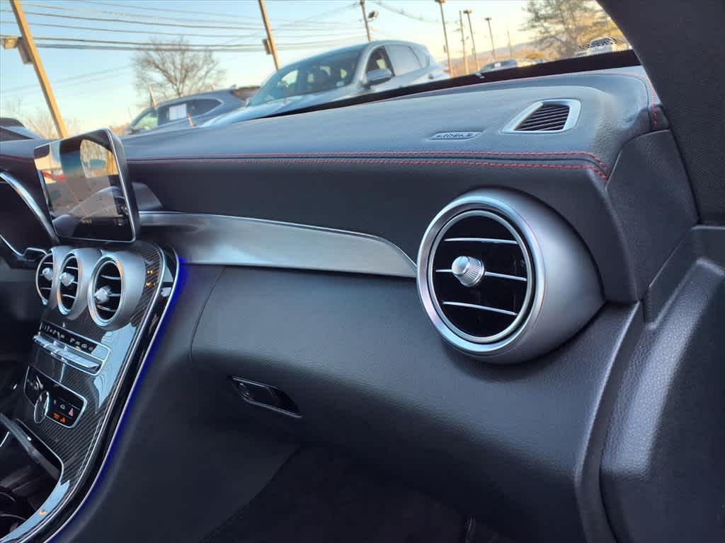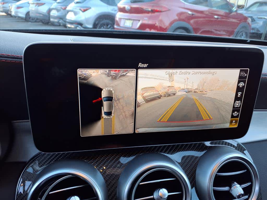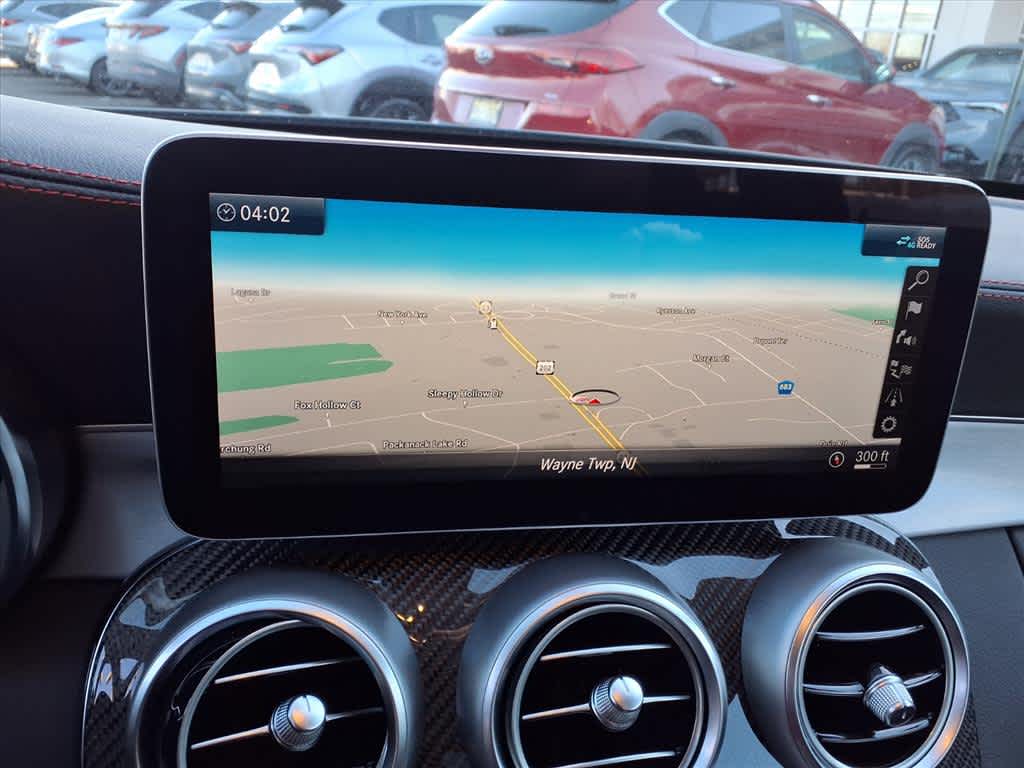 MULTIMEDIA PACKAGE Touchpad, COMAND® Navigation, voice control, Map Updates, Navigation map updates included for 3 years, PARKING ASSISTANCE PACKAGE Rear Cross-Traffic Alert, Active Parking Assist, PARKTRONIC w/advanced parking assist, Surround View System, surround view camera, AMG® PERFORMANCE STEERING WHEEL IN NAPPA/DINAMICA. Mercedes-Benz AMG® C 43 with Obsidian Black Metallic exterior and Black Leather w/ Red Stitching interior features a V6 Cylinder Engine with 385 HP at 6100 RPM*.